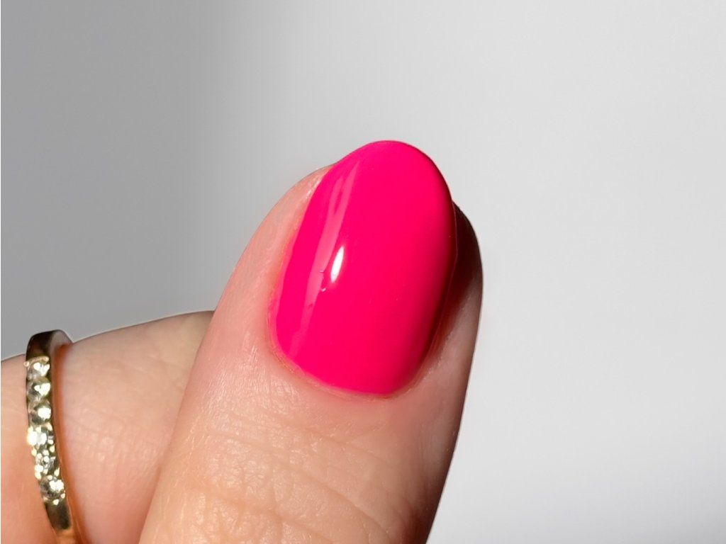 - Nanes první tenkou vrstvu barevného gel laku.Štěteček otři o hrdlo lahvičky a použij jen množství, které Ti zůstane ve štětinách.